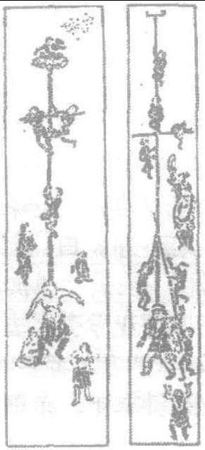 | 释义 | 古代名物 > 遊戲類 > 體育部 > 雜藝 > 尋橦 > 緣橦 緣橦 yuántóng 即尋橦。指其中之爬竿。 缘橦 缘橦南北朝时期的一种登竿表演。又名“寻橦”或“登橦”。还有称之为“猕猴幢伎” 或“猕猴缘竿伎”,形容伎人似猿猴那样灵敏快捷,在橦竿上攀登飞越。在后赵的元会上表演的各种橦伎很多,有的以额顶橦,有的以口咬橦,有时伎者缘橦直上,在橦端表演 “鸟飞”动作,左回右转,十分惊险。此外,还有一种车技,即在一辆长两丈的马车上,竖起木橦,顶端安一横木,在马疾跑如飞的情况下,两个橦伎在横木两端表演各种精彩的动作“或鸟飞,或倒挂”。