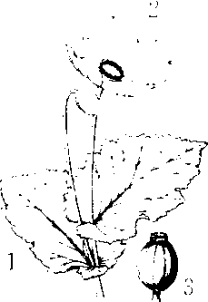 罂粟 1. 着花及果的植株 2. 花 3. 果实 罂粟别名大烟花。一年生或两年生草本,高30—300厘米。茎直立,分支,有白粉。基生叶具柄,长圆形或长卵形,茎生叶无柄,基部抱茎。花单生于茎顶,红色、粉红色、紫色或白色。种子细小,灰褐色。花期5—7月。公园及院落时见栽培。果皮的乳汁含植物碱,有毒,供药用,为镇静或镇痛剂,久服会上瘾。 罂粟罂粟科罂粟属1~2年生草本植物。公元7世纪传入中国。株高100~150 cm。全株无毛或疏具刚毛,不分枝,被白粉。叶卵形或长卵形,长7~25 cm,先端渐尖,基部心形,具不规则波状齿。茎生叶抱茎生长。花单生茎枝顶端,花梗长达25 cm,花瓣4,近圆形或近扇形,长4~7 cm,浅波状或分裂,白、粉红、红、紫或杂色。蒴果长圆状椭圆形,长4~7 cm。种子黑或灰褐色,种皮蜂窝状。种子多数,5~6月割取果实的乳汁,1个果实可采割3~4次。6~8月采收果实。由罂粟制成的鸦片中含有吗啡等20多种生物碱,其含量约为20%。花果期3~11月。原产南欧。药用,未熟果的汁液富含吗啡、罂粟碱等。加工入药,敛肺、止咳、止痛、安眠功效。罂粟属约100种,主产中欧、南欧和亚洲温带。中国产7种。很多种类是美丽的观赏花卉,如:虞美人一年生草本,茎、叶、花梗、萼片被淡黄花刚毛。茎分枝,茎生叶不抱茎。花色美丽。 罂粟yīng sù《本草纲目》谷部第23卷罂子粟(29)。药名。 罂粟opium poppy |
