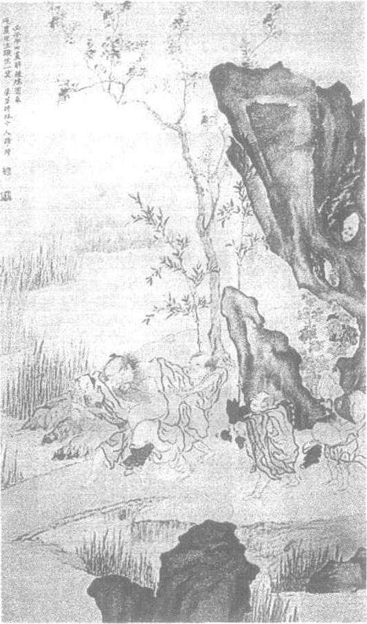 罗聘(1733——1799),字遁夫,号两峰,又号花之寺僧。原籍安徽歙县,迁居扬州。为金农高足。曾为金农代笔,以应四方索画者。善画梅、兰、竹,尤喜画鬼,自云: “凡有人处皆有鬼,鬼所聚集常在人烟密簇处,僻地旷野,所在殊稀。”纪昀说: “所画鬼趣图,颇疑其以意造,中有一鬼,首先于身几十倍,尤似幻妄。” 今见罗聘所画的鬼,或大头小身,或长臂巨腿,只是把人的比例加以畸形化而已。以鬼喻小人,借题发挥。画梅繁花密蕊 ,生意盎然。画竹叶肥而短,稠密成簇。画兰丛密繁茂。