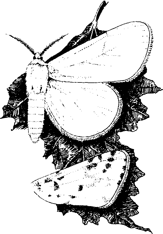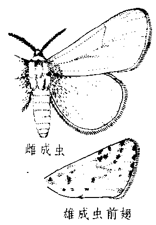 生活习性 在美国年生1~3代,以蛹在树干老皮下和建筑物缝隙内越冬。在欧洲和亚洲一年有两个完整世代,个别年份出现不完整的第三代。春季气温上升到日均温15℃以上时,越冬代开始羽化,秋季气温下降到日均温15℃时蛹进入滞育。因此,15℃是美国白蛾种群活动的临界点。发生一代地区需要有15℃以上气温90天、两代地区则需120天。成虫具一定的飞翔能力和趋光性,可飞行或借风力自然传播,也可飞进火车、汽车车厢内被带往他处,主要途径是各虫态随植物性货物、包装和填充物、交通运输工具等远距离传播。幼虫有较强耐饥力,1~2龄可耐饥3~5天,3~4龄可耐饥5~8天,5~7龄可耐饥11~14天,因而有利于远距离传播。有100多种天敌,起主要作用的是鸟类、寄生蜂、寄生蝇及病毒。北美天敌种类和数量多,抑制作用明显。传入欧洲和亚洲后的最初几年,由于天敌未被带入,本地天敌对新寄主需有一个适应过程,从而形成猖獗为害。许多国家都把美国白蛾列为植物检疫对象,采取严格检疫措施,以防传入。一旦传入,则进行封锁控制扩散。 防治方法 幼虫3~4龄前,集中在网幕内取食为害,抗药力低,易消灭,可剪除幼虫网幕,集中烧毁或喷药。末龄幼虫化蛹前,可在树的主干距地面1米处捆草,诱集幼虫在草内化蛹再集中消灭。各国在生产上推广使用的化学农药有敌百虫、敌敌畏、甲萘威、杀螟硫磷、伏杀硫磷、菊酯类等。苏联等国在生产上应用苏芸金杆菌,核型多角体和颗粒体病毒制剂较广。在微生物制剂中加入微量敌百虫或甲萘威混合使用,可起增效作用,美国白蛾核型多角体和颗粒体病毒具有较强专化性,对家蚕、柞蚕无致病性,可在养蚕区应用。 美国白蛾fall webwormHyphantria cunea Drury,昆虫纲,鳞翅目,灯蛾科。中国对外植物检疫对象。分布于美洲、欧洲和亚洲;中国辽宁、陕西已有发现。寄主有樱桃等100多种。雄成虫纯白色,翅展34~42 mm,前翅有4排斑点;雌成虫翅展42~48 mm,前翅斑点退化。成熟幼虫体长30~35 mm,体背深黑或近于黑色至浅黄色,体被羽状刚毛。以蛹在树皮下和地面落叶内越冬。在原产地北美洲每年发生1~4代,中国丹东每年发生2代。卵成块产于叶背。幼虫吐丝结幕于树冠,群居其中,逐渐将树叶吃光,影响树木生长。宜加强检疫措施。一经发现,及时剪去卵块,毁灭虫幕;低龄幼虫可喷药防治。