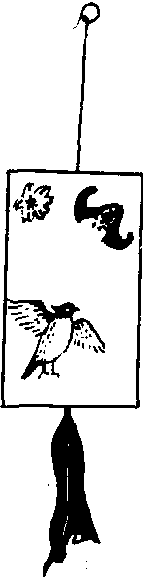 将翠花及蝙蝠绘在一块白色木牌上,下缀一块红布,表出售用翠鸟羽毛制成的各种装饰品。