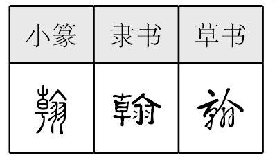 【提示】, 中间的日, 当中一横宋体与左右两边相接,楷体与左边相接,与右边相离。 , 中间没有一横,不要错写成𦏾; 下面的羽,两折笔下为一点、一提,旧字形是两撇 ( )。 *翰hàn16画 部 〈书〉 (1) 长而硬的鸟羽。 (2) 笔毫;毛笔: ~墨|挥~。 (3) 文辞;书信: 辞~|文~|书~。 翰 ☚ 羽 翟 ☛ 翰hàn春秋初期不从羽,从飞(飛),倝(gàn,日光照耀义)声。声母演变如干汗、甘酣例。本指锦鸡。引申指长而坚硬的羽毛,古代用来写字。转义指毛笔。如:翰墨。再引申指诗文,书信。如:文翰|华翰|翰林(唐代以后皇帝的文学侍从官的名称。明、清两代从进士中选拔)。现多用为译音字,特别是译外国人名。 翰★常◎常