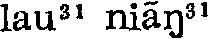 老娘 老娘泼辣妇人的自称,与年龄无关。《水浒传》二十一:“那厮含脸,只指望老娘陪气下情,我不信你。” ☚ 老身 老爹 ☛ 老娘 老娘俗谓收生婆为“老娘”。《辍耕录》: “世谓隐婆曰老娘。”例第三十回:“我说是时候,这六姐还强说早哩。还不唤小厮来,快请老娘去。” ☚ 应承 有紧没慢 ☛ 老娘lǎoniáng义同“姥娘”:那工夫,王志兴的闺女全子从河西~家回来,路过二龙湾,凑过来看他俩钓鱼。(《马加文集》) 老娘年长妇女的傲称。俗语:“老娘干下的个旧营生。” 《王婆骂鸡》(贤孝):“裁缝偷了老娘的鸡,领袷剜到衩子里。” 老娘儿lau53i 55lao53ier55老妇人。《金瓶梅词话》第五十七回: “因此上那老娘儿思想那大的孩儿。”《盛明杂剧二集》卷十《同甲会》: “ 〔近前〕老头儿万福。〔净〕老娘儿有礼。”此为夫称妻。 老娘lɔu53 niŋ213❶儿子称其母: ~啊,那时间你不顾我父年迈。 ❷女人作势自称: 谁敢和~我作对? 老娘lǎo niáng <府谷>外祖母。 老娘二1659①名曾祖母。⑴中原官话。山西襄汾〖 〗、永济〖 〗。⑵晋语。山西介休。1924年《介休县志》:「曾祖母曰~。」②名外祖母。⑴东北官话。东北〖 〗。孩子都上~家去了。⑵冀鲁官话。河北石家庄〖 〗、广宗。1933年《广宗县志》:「称外祖母为~。」河北新河。1930年《新河县志》:「外祖母曰~。」山东济南〖 〗、陵县、山东西部〖 〗。⑶胶辽官话。辽宁丹东〖 〗。山东安丘〖 〗、烟台〖 〗、牟平。1936年《牟平县志》:「称母之母曰~。」⑷中原官话。河南信阳〖 〗、新郑〖 〗、商丘〖 〗、鄢陵、濮阳、长垣、兰考、许昌、信阳、宁陵。豫剧《战斗到拂晓》:「她~不是早死啦吗?」山东东平〖 〗、昌潍。山西襄汾〖 〗、曲沃〖 〗、临汾〖 〗。⑸晋语。山西榆社〖 〗、阳曲〖 〗、定襄〖 〗、榆次〖 〗。河北成安。⑹江淮官话。《西游记》第九六回:「放了这等现成好斋不吃,却往人家化募,前头有你什老爷、~家里哩?」③名婆婆(背称)。⑴冀鲁官话。山东利津〖 〗。⑵晋语。山西岚县〖 〗、沁县〖 〗。④名干娘。闽语。福建崇安〖 〗。⑤名伯母;小姑母。⑴晋语。山西长子〖 〗。⑵江淮官话。江苏南京〖 〗。⑶西南官话。云南腾冲〖 〗。⑥名妻子。⑴江淮官话。江苏南通。孙锦标《南通方言疏证》:「今俗谓人娶妻…或以为娶~。」⑵吴语。浙江富阳〖 〗、杭州。《杭州歌谣》:「癙梨三,打扮~到半山。」⑶赣语。湖南耒阳〖 〗。⑦代母亲或中老年妇女自称(含自负或粗野意,有时用于生气或吵架的场合)。⑴中原官话。新疆吐鲁番〖 〗。河南〖 〗。吉学沛《两个队长》:「俺的四条腿畜牲也得罪你啦?~今天非跟你见识见识不可!」豫剧《平原儿女》:「休怪~下巴豆,只怪你存心不良施奸谋。」⑵晋语。山西忻州〖 〗。~真儿今天饶不咾你‖~没见过你这个灰坏人!⑶兰银官话。新疆乌鲁木齐〖 〗。~我谁也不怕!⑷江淮官话。江苏南京〖 〗。⑸西南官话。云南永胜〖 〗。⑹吴语。上海〖 〗。⑺粤语。广东阳江〖 〗。⑧名老年妇女;老太婆。⑴冀鲁官话。河北〖 〗。村东头来了个~。⑵赣语。湖南。⑶客话。湖南。⑷土话。湖南临武金江〖 〗。⑨名女仆。吴语。福建浦城〖 〗。⑩名伴娘(女子出嫁时,送嫁的老妇人)。闽语。福建光泽〖 〗。   老娘旧称接生婆为老娘。宋魏泰《东轩笔录》七:“苗振以第四人及第,既而召试馆职。一日谒晏丞相。晏语之曰:‘君久从吏事,必疏笔砚。今将就试,宜稍温习也。’振率然答曰:‘岂有三十年为老娘,而倒绷孩儿者乎?’”今仍有此俗称。 老娘(一)lǎoniáng <名> ❶老母亲。 ❷ (方)已婚的中老年妇女的自称(含自负意)。 (二)lǎoniang <名> ❶ 旧称接生婆。 ❷ (方)外祖母。 老娘lǎo·niang❶外祖母:你是司棋的~,他的表弟也该姓王,怎么又姓潘呢?(七四·1823)众丫头看不过,都笑说,“热孝在身上,~才睡了觉,他两个虽小,到底是姨娘家。”(六三·1517) ❷称娘家:凤姐儿道,“前儿我生日,里头还没吃酒,他小子先醉了,~那边送了礼来,他不说在外头张罗,他到坐着骂人,礼也不送进来。”(四五·1037)我明儿回了太太,仍回~家去罢。(七四·1819) 老娘lǎo niáng❶清以来江湖谓包裹。《江湖春典》:“包裹称老娘。”《切口·掘壁贼》:“老娘: 包裹也。” ❷清帮谓大二房老官之妻。《清门考源·各项切口·清门类》:“老娘: 大二房老官之妻。” 外祖母【同义】总目录 外祖母老娘 乳母【同义】总目录 乳母阿奶老娘 收生婆【同义】总目录 老娘收生婆稳婆 母亲【同义】总目录 北堂萱堂慈闱寿母母亲尊慈老娘尊萱嬷嬷孃子