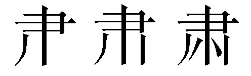 sù表意,小篆从肀(niè)在 (渊)上,肀为笔, 为水渊,表示落笔谨慎,如临深渊,隶定为“肅”。本义为恭敬,引申为庄重、严肃、清除、萎缩等。唐代俗字、《简化字表》简作“肃”,据草书楷化。 【辨析】 ❶以“肃”作音符构成的形声字一般读xiɑo,但声调不同。xiāo:萧、箫、潇∣xiào:啸。 ❷“肃(肅)”可作类推简化偏旁使用,如:啸(嘯)、萧(蕭)、潇(瀟)。 |