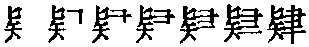 【提示】左上的匕,不要错写成“七”。矢,位于字或部件的左边时,末笔的捺改点。 , 有竖笔穿过时中间的横笔右端出头,不要错写成彐。 △肄yì13画 聿部 研习;学习: ~业。 肄yì甲骨文从又(手)从(yì,长毛猪),象以手抚猪身形。西周金文手下增巾,象以手刷洗猪毛形。有检查义和劳苦义。也指学习。如:肄业。战国时右已从聿(yù),左从正立人形(“大”),上侧着头,汉初隶书同此。小篆隶楷逐渐讹成现在的左旁,侧头讹成匕,“大”讹成矢。《说文》正体的左旁还不错。正体和小篆右旁比聿少一横,是从又(手)持巾。 肄★规◎常