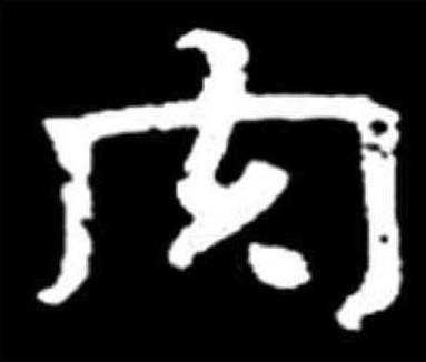 ❹ 大酒大肉|枯骨生肉|疗疮剜肉|情同骨肉|细皮嫩肉|行尸走肉|羊头狗肉|衣帛食肉|衣锦食肉|有血有肉|自相鱼肉 肉(ròu)“ ,胾肉。象形。凡肉之属皆从肉。”(如六切) 徐锴《系传》:“肉无可取象,故象其为胾。” 甲骨文作 、 ,象一块肉形,中有纹理。包山楚简作 。卜辞中或用其本义,如:“丙入(纳)肉?〇弜(勿)入肉?”(《花》113)入,通“纳”,贡纳之意。[1]金文中未见单用的“肉”字。 “胾”,是大块的肉。“肉”本义是动物的肌肉,引申可表示蔬菜瓜果等去皮去核后中间可食用的部分,如“笋肉”、“龙眼肉”等。古代圆形有孔的钱币和玉器,孔内叫“好”,孔外叫“肉”。《尔雅·释器》:“肉倍好谓之璧,好倍肉谓之瑗,肉好若一谓之环。” 肉部收属字一百三十九个。注意:“肉”作偏旁时,只有少数写作“肉”,绝大多数写作“月”。 肉ròu(6画)