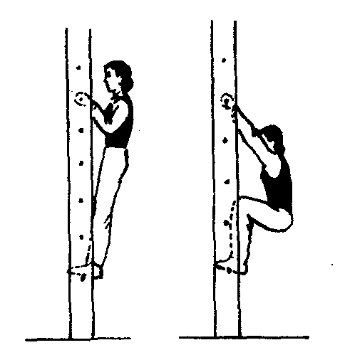 利用肋木练习来发展肩、肘、腕关节周围韧带和屈、伸肌群力量的一种方法。其方法形式多种多样,有臂的屈、伸练习,推撑练习;有悬垂、支撑和斜面练习;还可双人互助练习和与其它辅助器械相结合进行练习。适合老年人练习的内容如: