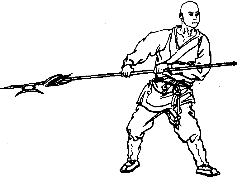 戟法。指用戟柄戳击对方的方法。 《十八般武艺全书·戟法》:“肘逼击,……收戟转身,起一盘头,用左肘紧靠戟秘逼之外击。足用左斜弓步,此盖防援取之,必为所算。故须用戟秘击之也。”