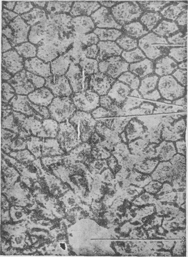 图6 胆小管(兔肝,浸银法) 1.肝细胞 2.胆小管 3.中央静脉 肝血窦 位于肝板之间,通过肝板孔互相通连。肝血窦接受小叶间动脉和小叶间静脉的血液,汇入中央静脉。血窦腔大而不规则,直径约20~30μm。血窦容积约占肝小叶的10%。窦壁主要由内皮细胞和肝巨噬细胞组成。 (1) 内皮细胞: 与毛细血管内皮细胞结构相似,细胞扁平,含核部分突向窦腔 (图4)。细胞的相邻面相互重叠,常有0.1~0.5μm宽的间隙。细胞的薄部有许多窗孔,小者直径0.1μm,常成群分布,大者约1μm(图5)。多种哺乳动物和人肝血窦的内皮外无基板,只有少量网状纤维。肝血窦通透性大,血浆各种成分可自由通过。胞质内细胞器较少,微丝和微管较发达,并有较多吞饮小泡。小叶间动脉和小叶间静脉与血窦连接处及血窦与中央静脉连接处的内皮细胞常向腔内突出,收缩作用明显,可控制血窦内的血流量 。 (2)肝巨噬细胞: Kupffer(1876)首先观察描述,故常称Kupffer细胞。它们位于血窦腔内,体积较大,形状不规则,有胞质突起附于内皮细胞上,或者穿过内皮间隙或窗孔伸至窦周间隙(图4、图5)。肝巨噬细胞属单核吞噬细胞系统,有很强的吞噬和吞饮能力,可清除由胃肠道进入门静脉血内的病毒、细菌、异物或注入动物体的实验性异物颗粒,如台盘蓝、胶体金、乳胶粒等;也可吞噬清除衰老或异常的红细胞和血小板。肝巨噬细胞还有处理抗原、参与免疫应答的功能。 (3) 隐窝细胞: 是藉电镜观察鼠肝发现的一种细胞,位于血窦内皮细胞外面。细胞数量少,其形态特征是细胞器多聚于胞质的一侧,另一侧胞质明亮。胞质内还含有一种类似分泌颗粒的结构,有界膜包围,中心致密。这种细胞的性质和来源尚不清楚。 窦周间隙 血窦内皮细胞和肝细胞之间的狭小间隙称为窦周间隙,由Disse(1882)首先报道,故常称Disse间隙。间隙宽约0.4μm。由于血窦壁通透性大,间隙内充满血浆,肝细胞血窦面的微绒毛伸入间隙内,故窦周间隙是肝细胞和血流之间进行物质交换的场所(图5)。胚胎肝在造血期间,间隙内有大量造血细胞,以后逐渐消失。正常成人的窦周间隙内偶见白细胞。间隙内有散在的网状纤维和贮脂细胞,起支持血窦的作用。相邻肝细胞近窦周间隙处可见较宽的空隙,与窦周间隙相通,称细胞间陷窝。有的肝细胞之间有细胞间通道,沟通两侧的窦周间隙;此处的肝细胞表面也有许多微绒毛,此种肝细胞有更广阔的表面与血流进行物质交换(图5)。 贮脂细胞位于窦周间隙或细胞间陷窝内,又称间质细胞(图5)。伊东(1951)首先描述,故称伊东细胞。细胞形状不规则,有胞质突起,附于内皮细胞外表面或伸到相邻肝细胞之间。正常时贮脂细胞较少,其形态特点是胞质内有大小不等的脂滴,粗面内质网和高尔基复合体发达。贮脂细胞主要有两种功能,一是贮存维生素A,如动物饲以大量维生素A,细胞显著增多,体积变大,维生素A贮存于脂滴内。二是生成纤维,如在酒精中毒、四氯化碳中毒等实验性肝损伤或肝硬化时,贮脂细胞增多,细胞内脂滴减少,细胞形似成纤维细胞,表现活跃的蛋白质合成和分泌功能,肝小叶内胶原纤维增生。故贮脂细胞与肝纤维增生和肝硬化等病理变化密切相关。 胆汁排出通道 肝细胞分泌的胆汁排入胆小管。胆小管内的胆汁从肝小叶的中央部流向周边。在小叶的边缘处,胆小管汇合成若干短小的小叶内胆管,或称Hering管(图3),直径约15μm,管壁为单层立方上皮,上皮细胞较肝细胞小,胞质内细胞器较少,腔面有微绒毛。在胆小管和Hering管之间还有一段小的过渡性管道,称胆小管-胆道连接,它由1~2个立方上皮细胞和肝细胞共同组成。有人认为小叶内胆管的上皮细胞分化较低,可分化形成肝细胞或胆管上皮细胞。Hering管出肝小叶,与小叶间胆管相连。后者行于小叶间结缔组织内,向肝门方向汇集,管径逐渐增粗,在肝门处汇合成左、右肝管。肝内胆管上皮细胞有再吸收水分、浓缩胆汁和向管腔内分泌氯离子和重碳酸盐等电解质的作用,并受促胰泌素的调节。 肝的血管和淋巴管 肝接受门静脉和肝动脉双重供血。门静脉血量占3/4,将胃肠道吸收的物质输送入肝。肝动脉血量占1/4,以氧和营养物质供应肝。门静脉和肝动脉在肝内不断分支,先分别形成叶静脉和叶动脉,继而分支为段静脉和段动脉,这些较大的血管一般肉眼可见。静脉管壁内有纵行平滑肌,动脉的结构与中动脉相似。段静脉和段动脉再分成小叶间静脉和小叶间动脉。小叶间静脉发出终末支,称终末门微静脉,行于相邻两个肝小叶之间。终末门微静脉再发出若干短小分支,称入口微静脉,穿过界板与肝血窦相通。门静脉的血液主要供应肝实质。肝动脉不断分支营养被膜、肝的间质和胆管。小叶间动脉的终末支称终末微动脉,它也发出若干短小的入口微动脉,穿过界板与肝血窦通连。小叶间动脉和终末微动脉发出的许多小支,还在胆管周围吻合形成毛细血管网,称胆管周毛细血管丛,它们再汇合成微静脉,与小叶间静脉或终末门微静脉吻合,或直接进入肝小叶。这种胆管周毛细血管丛汇合形成微静脉再进入肝小叶的血管,称胆管周门血管。 肝血窦的血液从肝小叶的周边流向中央,汇入中央静脉。中央静脉是肝静脉的终末分支,内皮外无平滑肌,只有少量结缔组织。中央静脉穿行于肝小叶长轴的中心,垂直通连小叶下静脉(图1)。小叶下静脉位于小叶的基部,管径较大,汇集成收集静脉,后者再汇集成肝