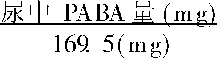 ×100%。正常人6h尿液内PABA回收率为81.6±8.5%,慢性胰腺炎、胰腺癌患者,尿液内PABA回收率与健康人比较,呈现明显低值,肝脏病患者尿内PABA回收率亦明显减低。本试验对于测知中度以上的胰腺外分泌功能减退,为最适宜的筛选法。对轻度胰腺外分泌功能障碍不灵敏,本试验结果正常,不可轻易排除胰腺疾病。注意:胃肠道病变所致的吸收不良,肝肾功能重度异常时可出现假阳性,肾功能异常、妊娠、急性胰腺炎患者,应慎用本试验检查。