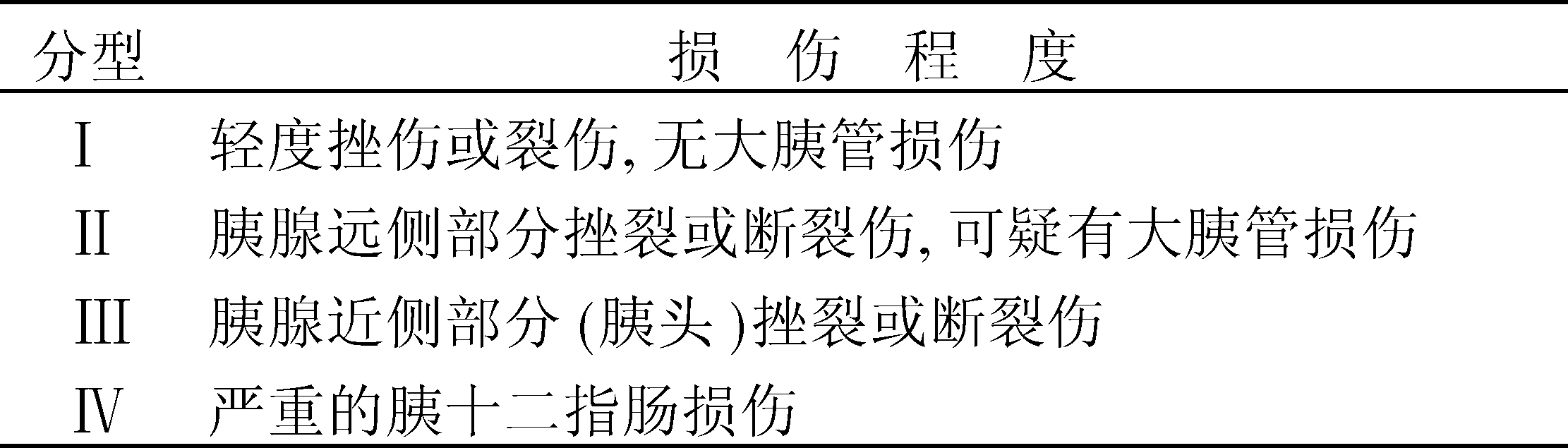 | 字词 | 胰腺外伤分类 |