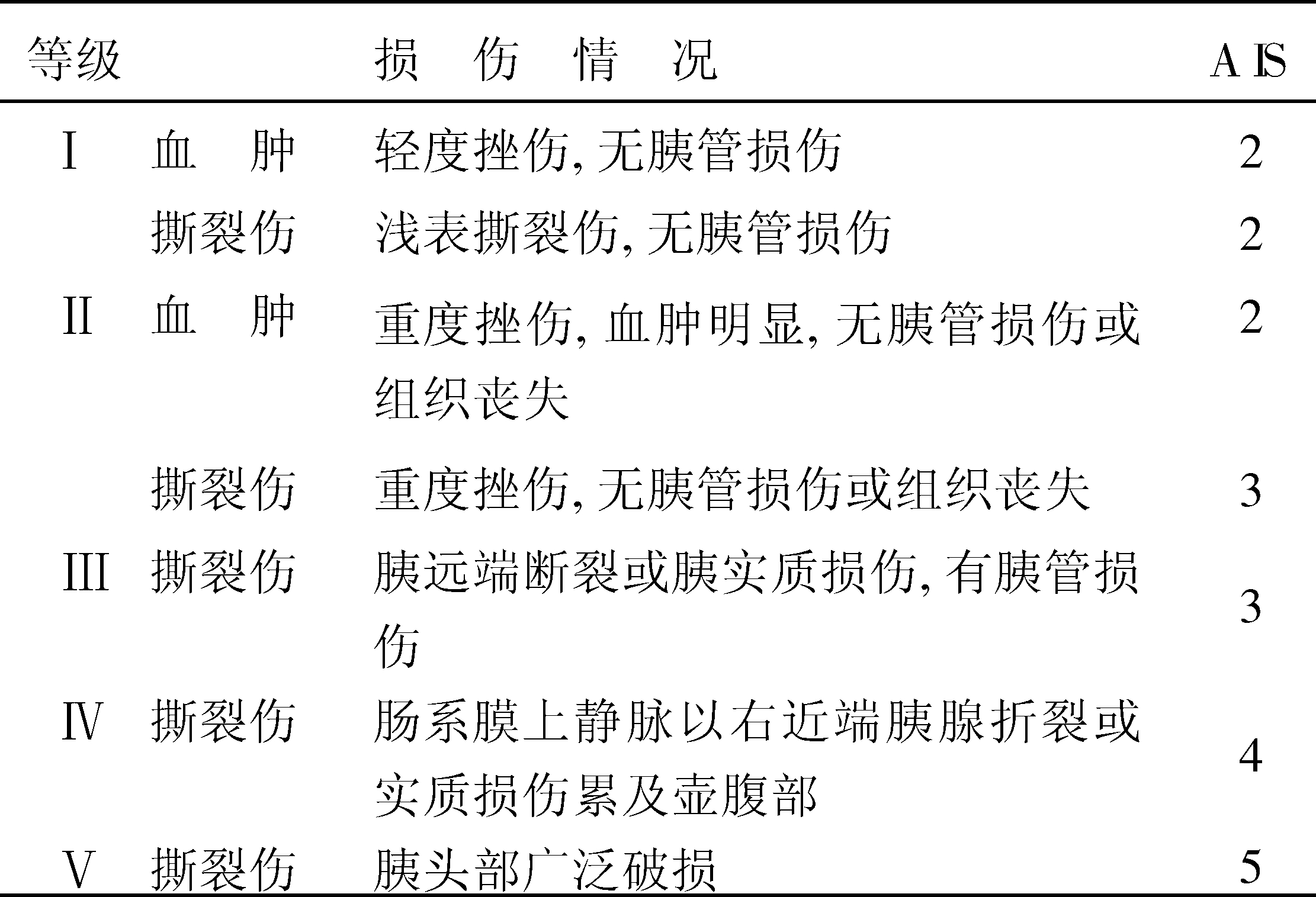 胰腺损伤分级