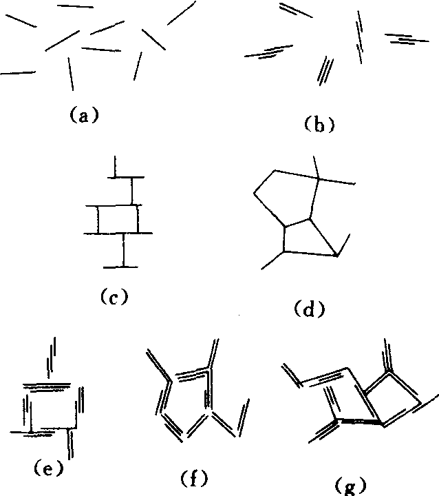 胶粒的缔合association of colloid partic-le胶粒相互作用构成各种联结方式的现象。 方式 当薄片状粘土胶粒的溶胶,由于相互作用而聚沉时,可能发生3种不同的颗粒缔合:面-面(FF)、边-面(EF)和边-边(EE)缔合。3种缔合方式的结果很不相同:面-面缔合主要导致形成较厚的薄片,有时也可能形成较大的薄片;边-面和边-边缔合将引起体积庞大的三维片架结构。3种不同缔合方式对胶体的工艺特性产生十分不同的结果,胶粒缔合的各种模式如下图。3种缔合方式在胶体化学意义中实质是3种聚沉方式。只有边-边和边-面两种缔合方式可称为“絮凝”,而面-面缔合产生较厚的颗粒可称为“定向聚集”或“平行聚集”,简称“聚集”。边-面和边-边缔合物的解离叫做“散凝”,而面-面缔合物聚集体解离分裂成薄片时叫“分散”。 机理 薄片状粘土胶粒有2种表面:一是晶层平面,二是晶层边缘表面。晶层平面上的双电层有恒定的电荷,它完全决定于同晶置换的类型和程度。因此,晶层平面的电荷密度与溶液中的电解质的存在无关。如果晶层和反离子之间存在着专性吸附,则位于表面  图 粘土悬浮体中颗粒缔合模式和术语 (a)“分散”和“散凝”的;(b)“聚集的”但是“散凝的”(面-面缔合,或平行的或定向的聚集);(c)“分散的”边-面絮凝的;(d)“分散的”边-边絮凝的;(e)“聚集的”边-面絮凝的;(f)“聚集的”边-边絮凝的;(g)“聚集的”边-面和边-边絮凝的 的反离子多些,扩散层中就少些。晶层边缘表面的原子结构与晶层平面的不同,在晶层的边缘,四面体硅氧片和八面体铝氧片破裂,原先的键断开了,在这样的表面上,双电层是由决定电位离子的吸附所产生。这种表面,在酸性溶液中,以铝离子作为决定电位离子时带正电,即带正电的双电层;在碱性溶液中,以氢氧离子作为决定电位离子,则为带负电的双电层。其等电点不一定出现于中性,而是随铝氧片的晶体结构变异。这种双电层内层的电荷,随pH降低所带正电荷更多些,其电荷符号还可随pH升高而反转。总之,由于薄片状粘土胶粒有两种晶体结构上不同的表面,每一种表面含有不同类型的双电层,因此使胶粒在相互作用时产生以上的几种缔合方式。 |