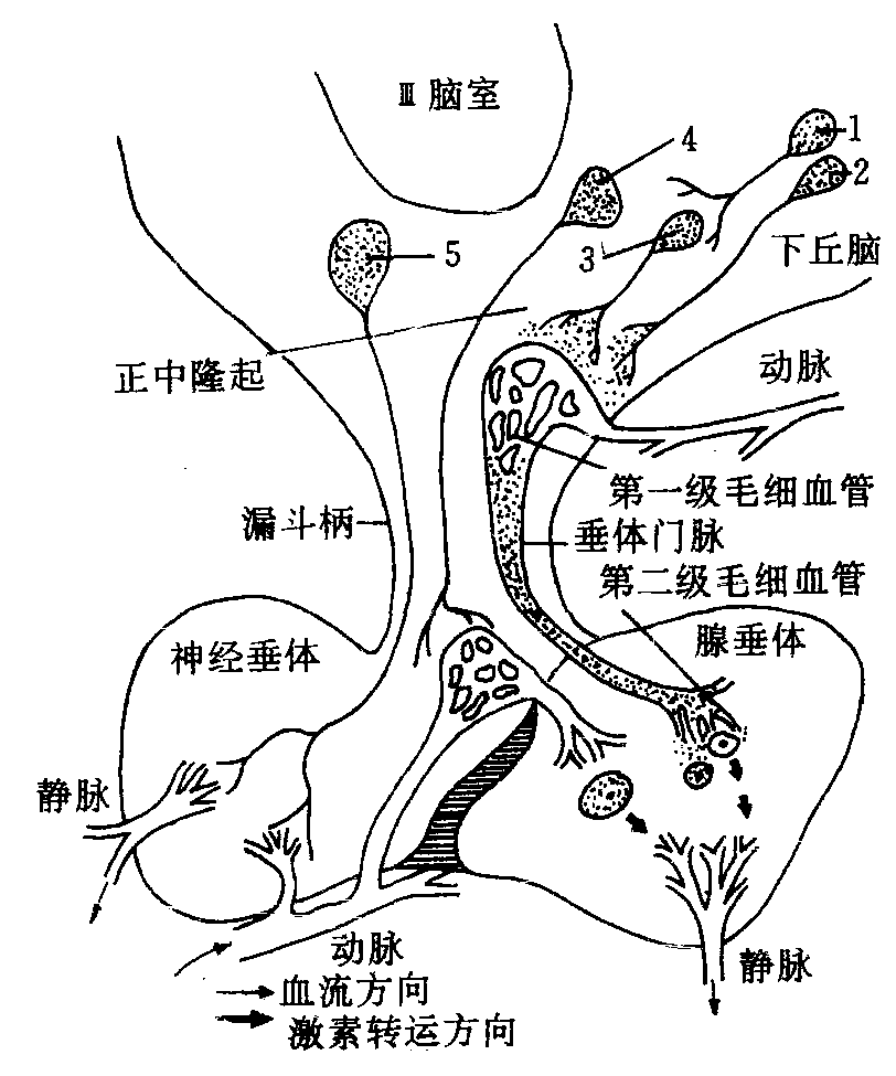 1,2,3,4,5为下丘脑各类肽能神经元 图1.10-2 下丘脑-垂体功能单位 ☚ 肾上腺髓质与皮质的功能 生长与发育的控制 ☛ |