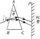 | 释义 | 光的色散 一束白光通过三棱镜后形成由红、橙、黄、绿、蓝、靛、紫各色光组成的彩色光带(光谱)的现象叫作光的色散. 1.光谱的产生表明了白光是由红、橙、黄、绿、蓝、靛、紫各种单色光组成的色光. 2.色散现象说明各种色光通过同一棱镜时偏折的角度是不同的,表明各色光以相同的入射角射入棱镜时产生的折射角不同,紫光折射角最大,红光折射角最小,说明棱镜对紫光的折射率最大,对红光的折射率最小,可见同一种材料对于不同的色光有不同的折射率,色光的频率越高,在同一介质中的折射率越大. 从介质的折射率 例 一束白光从顶角为θ的一边比较大的入射角i射入并通过三棱镜后,在屏P上可得到彩色光带,如下图,在入射角i逐渐减小到零的过程中,假如屏上的彩色光带先后全部消失,则( ). A.红光最先消失,紫光最后消失 B.紫光最先消失,红光最后消失 C.紫光最先消失,黄光最后消失 D.红光最先消失,黄光最后消失 分析 如图,可看出,自光从AB射入玻璃后,由于紫光偏折大,从而到达另一侧面AC时的入射角较大,且因紫光折射率大,sinC= 答 B.