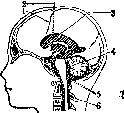 1.冠状缝 2.前囱的侧角 3.侧脑室4.第四脑室 5.小脑