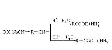 腈。 腈可用 一级、二级卤代烃与氰化钠 (或氰化钾)反应制备。如: