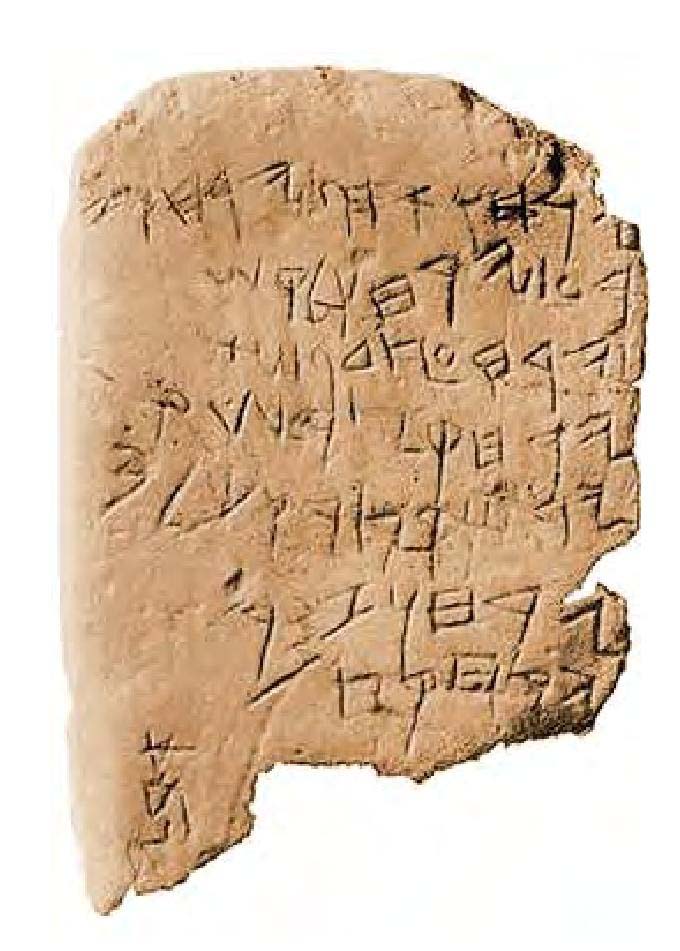 刻有腓尼基文字的墓碑《Ashtartga之子碑》(约公元前700年) 腓尼基人是古代杰出的航海家和商人,他们曾经驾驶着商船往返于地中海沿岸的每一个港口。由于腓尼基人的居住地特产紫红色染料,因此古代希腊把它称之为“绛紫色的国度”,音译即“腓尼基”。特殊的地理环境和繁荣的贸易往来,使腓尼基的文化深受古代埃及、古代中东地区文化和地中海文化的影响。由此产生的腓尼基字母,便成为第一个真正的字母系统。