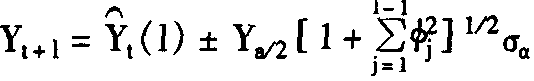 t(l),方差为Var[et(l)]的常态分配,亦即Yt+1~N{ 式中α代表显著水准。当σ未知时,在大样本的情况下,可利用样本残差算出的标准差Sα替代,而得到近似的结果。 |