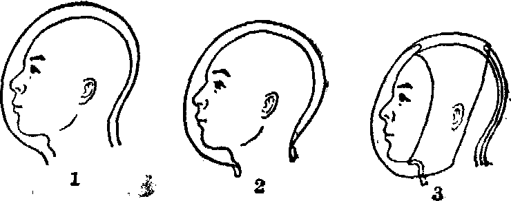 图5 加压头盔的类型 1.全加压头盔(与密闭服配套) 2.全加压头盔 (与部分加压服配套) 3.部分加压头盔