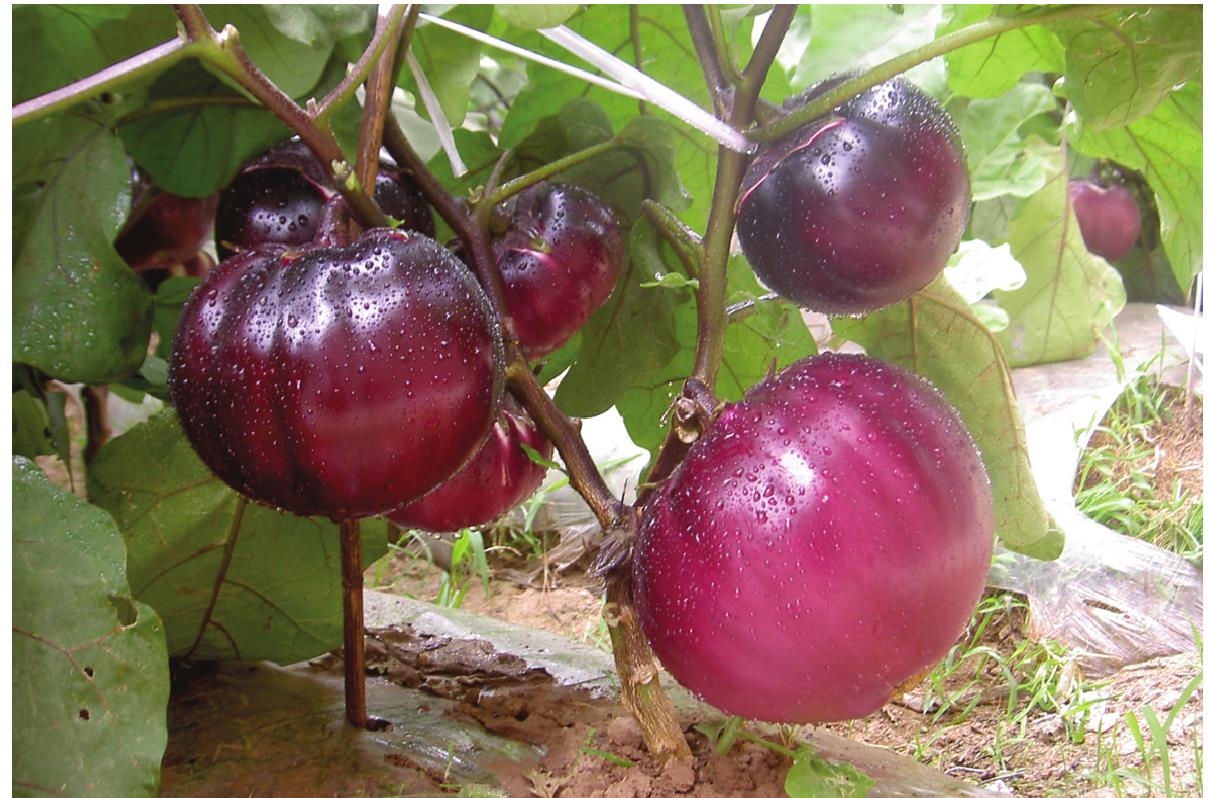 甘肃省航天育种工程技术研究中心培育的茄子品种。其选育方法集航天技术、生物技术、农业育种技术于一体,综合应用了日光温室加代选育、抗性选择、杂种优势等技术。2002年12月30日—2003年1月5日将天水地方品种青茄搭载在神舟四号飞船上,太空诱变后在地面经2代 单 株 单 果 选 育 、2代 自 交 选 育 成 的 自 交 系05-4-41-1-2-1作为母本,将地方品种龙果圆茄搭载在神舟三号飞船上,太空诱变后经2代单株单 果 选 育 、2代 自 交 选 育 成 的 自 交 系05-4-9-1-1-1作为父本,配制成了中早熟茄子航茄5号杂交一代新品种。2009年8月3日通过了省级成果鉴定,达国内同类研究领先水平。该品种果实圆球形,紫红色,光泽亮丽,果肉乳白色,肉质细嫩品质优,果肉褐变程度极弱,单果重500克左右,商品性好。耐热耐湿,抗旱性较强,抗褐纹病,高抗黄萎病,在北京、内蒙古、四川、新疆、宁夏、甘肃、浙江等省市已大面积推广种植。