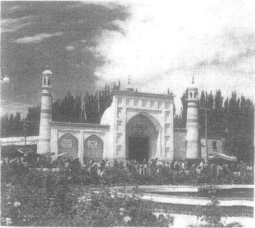 ☚ 建筑 苏公塔 ☛ 艾提卡尔清真寺 艾提卡尔清真寺中国伊斯兰教清真寺。位于新疆维吾尔自治区喀什市解放路艾提卡尔广场。艾提卡尔,维吾尔语音译,意为节日场所。相传始建于明正统七年 (1442),清代又经多次重修和扩建,初步形成了当今的规模。占地约16000多平方米,由礼拜寺和经学院两部分组成。经学院、沐浴室、宿舍在西部。东部有12米高的尖拱型门楼,边廊环以穹形壁龛。门楼左右为高18米的圆柱形砖砌宣礼塔,门楼与塔以短墙相连,构成一个整体。礼拜殿宽160米,进深16米,分内外两殿,殿顶由158根绿色雕花木柱承重,顶棚绘有彩色花卉的藻井,令人目不暇接。该殿可同时容纳6000余名穆斯林作礼拜,是国内现存最大的伊斯兰教礼拜殿。 ☚ 艾什尔里 玉皇圣诞 ☛ |
