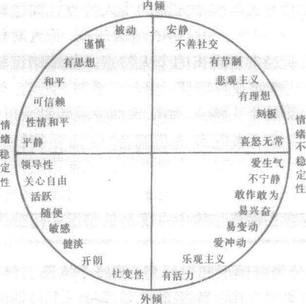 艾森克人格维度图 其中,精神异常与情绪稳定性和向性无关,是独立的维度,而情绪稳定性与向性具有相互制约关系(见图),从图中可以找出人格特质。如,一个人在谨慎的特质上得分高,就可以认为他在内向和情绪稳定性方面相关高,是稳定内向人。以此为基础,艾森克编制并修订了《艾森克人格量表》。☚ 人格 人格层理论 ☛ 艾森克人格理论 艾森克人格理论Eysenck’s personalitytheory英国心理学家H.J.艾森克提出的以人格结构层级说和三维度人格类型说为主要内容的人格理论。他认为,人格是由行为和行为群有机组织而成的层级结构。最低层是无数个具体反应,是可直接观察的具体行为。较高层是习惯性反应,它是具体反应经重复被固定下来的行为倾向。例如,饭前洗手是具体反应,当它成为习惯性行为时,就成为一种相对稳定的行为倾向。再高一层是特质,是一组习惯性反应的有机组合,如焦虑、固执等。最高一层是类型,是由一组相关特质的有机组合而成,具有高度概括的特征,对人的行为具有广泛的影响。他通过对人格问卷资料的因素分析研究,确定了人格类型的三个基本维度。根据外倾性维度可以把人格分为外倾型和内倾型;根据情绪稳定性可以把人格分为情绪型和稳定型;根据心理变态倾向可以把人格分为精神失调型和精神整合型。 ☚ 埃平格和赫斯类型论 爱洛斯 ☛ 艾森克人格理论 艾森克人格理论Eysenck's personality theory亦称“人格双因素理论”。德裔英国人格心理学家艾森克将因素分析方法和经典实验心理学方法相结合而建立的人格类型理论。该理论认为神经质倾向和内外向是人格的两个因素,且两者存在相关。在行为特点方面,外向的人不易受周围环境影响,难以形成条件反射,在人格上具有情绪易冲动、善于社交、渴望刺激、粗心大意和易发脾气等特点。内向的人易受周围环境影响,容易形成条件反射,在人格上具有情绪稳定、好静、不爱社交、不喜欢刺激、爱深思熟虑和有秩序的生活和工作、极少发脾气等特点。当外向性和情绪不稳定性同时表现在一个人身上时,很容易在不利的情境中表现出强烈的焦虑。1964年艾森克以内外向因素为一个维度,以神经质倾向为另一个维度绘制成人格结构图。两种人格因素(神经质倾向和内外向)分隔出四种人格类型(稳定外向型、稳定内向型、不稳定外向型、不稳定内向型),与古罗马的四种气质类型(多血质、黏液质、胆汁质和抑郁质)相对应。 ☚ 荣格人格理论 人格双因素理论 ☛ 艾森克人格理论 艾森克人格理论亦称“艾森克人格双因素理论”。德裔英国心理学家艾森克(Hans Jurgen Eysenck, 1916—1997)提出。认为神经质倾向和内外向为人格的两个因素。并以内外向为一个维度,以神经质(稳定和不稳定)为另一个维度,绘制出人格结构图,把人格分成四大类(与古希腊的气质类型对应)、三十二小类。 ☚ 反向移情 奥尔波特人格理论 ☛ |