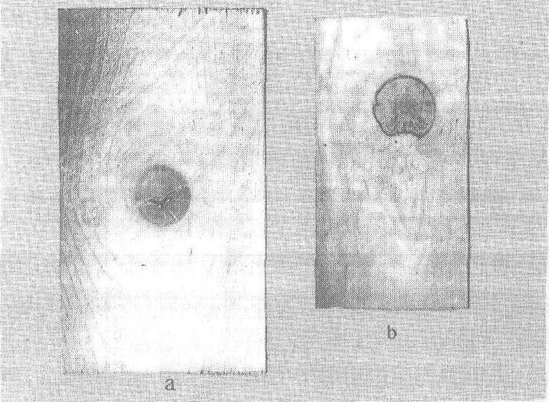 图1 红松板材上的节子 节子对木材材质和强度的影响 节子是木材中存在最普通的一种缺陷,能降低木材的材质和强度,其影响程度主要取决于节子的大小、密集程度以及在木构件上的位置。在一木构件上的节子,降低木构件的顺纹抗拉强度和冲击韧性比抗弯强度的降低要大,而降