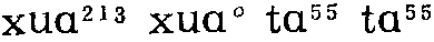 花花达达二2458①形不均匀。⑴胶辽官话。山东牟平〖 〗。⑵中原官话。山东平邑〖xua213-21 xua°ta53-55 ta°〗。这块布染的~的。山东郯城〖xua213-22 xua°ta55 ta°〗、枣庄〖xua213-211 xua°ta55 ta°〗。江苏徐州〖xua213 xua°ta55 ta55〗。下种务要均匀,别~的。②形模模糊糊;错乱不清。⑴胶辽官话。山东牟平〖 〗。⑵中原官话。山东平邑〖xua213-21 xua°ta53-55 ta°〗、郯城〖xua213-22 xua°ta55 ta°〗。我看东西老是~的。山东枣庄〖xua213-211 xua° ta55 ta°〗。江苏徐州〖 〗。我已老眼昏花,看什么都~的。   |