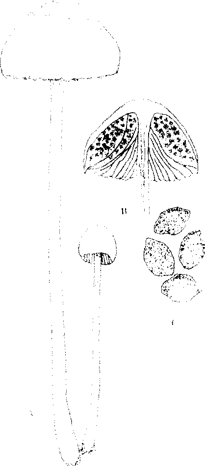 | 释义 | 花褶伞 花褶伞huazhesanPanaeo-tus reterugis真菌门、担子菌纲。子实体伞状,菌盖1~3厘米,钟形至半球形,中央稍凸,光滑,烟灰色,干时灰色有光泽,盖顶蛋壳色,稍有皱纹,边缘有菌幕残片。菌肉薄。菌褶直生,不等长,灰白色,有黑灰色花斑。菌柄中生,长4~16厘米,粗0.2~0.6厘米,带红色或浅紫色,有白色粉未,空心,常扭曲。担孢子柠檬形,黑色,光滑。春天至秋天生于粪堆和肥土上,群生或散生。产于河北、江苏、浙江、四川、青海、海南岛等地。花褶伞为常见毒菌之一,误食后发病快,约1小时后出现精神异常,瞳孔放大或产生幻视,或跳舞唱歌,或大声狂笑,有的为说话困难或昏睡。除严重者外,一般无胃肠道症状。一般不需服药,可自然消失中毒症状,无后遗症。