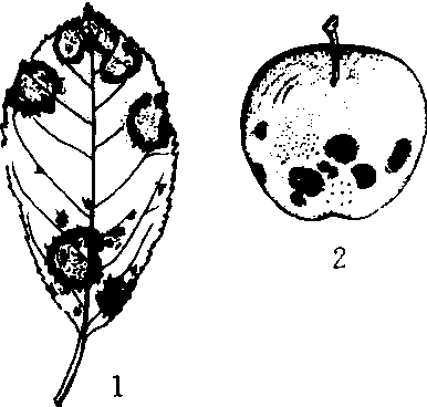 苹果褐斑病apple brown leaf spot又称绿缘褐斑病、早期落叶病。苹果的一种真菌病害。病原菌是半知菌亚门的苹果盘二孢菌 〔Marssonina coronaria(Ell. et Davis) Davis〕,有性态是子囊菌亚门的苹果双壳菌(Diplocar-pon mali Harada et Sawamura),不常发生。主要危害叶片,导致提早落叶,有时亦危害果实,病斑浅褐色。叶斑有3种类型: ❶同心轮纹型。初为黄褐色小点,扩大成褐色小圆斑,周围有黄绿色晕圈,病斑上发生同心轮纹排列的黑色小点,即病菌的分生孢子盘。 ❷针芒型。在星芒状斑上可见棕褐色菌丝束和黑色小点。 ❸混合型。病菌主要以菌丝体或分生孢子盘在病落叶上越冬,翌年春末夏初产生分生孢子,经风雨传播。树势衰弱雨多、湿度大有利于病发生和流行。病重树落叶早。采用以增强树势为主,清除落叶和生长期喷药保护相结合的防治措施。