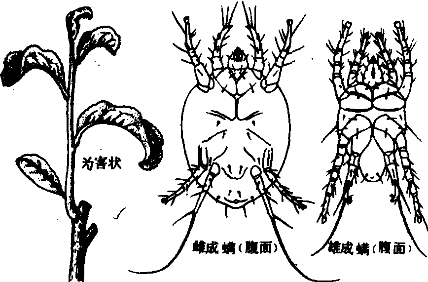 茶跗线螨 生活习性 一年发生代数主要取决于温度。据四川省农业科学院茶叶研究所试验观察, 全世代发育起点温度(发育零点温度)为10.28℃, 有效积温78.27日度;川西茶区名山县年均温15.5℃, 一年发生20代;川东茶区永川县年均温18℃,一年发生30代。卵期1~8天, 幼螨期1~12天, 产卵前期1~6天, 3~18天完成一代。一般栖息嫩叶背面。以两性生殖为主, 雄成螨一生可交尾多次。卵散产于芽尖和嫩叶背面, 每雌螨一般产卵31.7~52.5粒,最多达106粒。当日均温低于10℃时, 即以末代雌成螨于残留新嫩芽叶、芽鳞、叶柄等间隙处越冬。雌成螨经6个月, 翌年日均温升达10℃以上时, 陆续出蛰产卵于茶丛中下部冗生和徒长枝的芽叶上。一般春茶发生数量不多, 夏、秋茶日均温达20℃以上, 虫数激增, 繁殖1代仅需3~8天, 进入为害盛期。其传播除人为携带外, 季风有助其蔓延扩散。 防治 预测始盛期, 及时组织防治, 根据当地气象资料有效积温达235日度左右或年均温15℃左右茶区,始盛期一般在5月下旬,18℃左右茶区一般在5月中旬。当茶园有螨芽叶率在10%以下为为害初期, 向后加30天为始盛期。始盛期前采净或剪净茶丛内新嫩芽叶,喷施50%代森铵500倍液40%亚胺硫磷、50%辛硫磷1000倍液。以后根据茶园调查, 当平均每叶螨卵数达10个以上时再喷药防治。越冬前当日均温近10℃时,除净茶园杂草, 剪净或采净残留的新嫩芽叶后,喷洒波美0.5~1.0度石硫合剂。 |