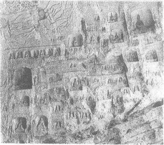 | 释义 | 莲花洞北壁列龛 莲花洞北壁列龛北魏。长600厘米,宽820厘米。河南省洛阳市龙门石窟莲花洞北壁雕刻。北壁佛龛或大或小,变化多端,有尖拱龛、盝顶龛、屋形龛和壶门形龛等。龛下铭文的纪年,有正光二年(公元521年)的,有孝昌三年(公元527年)的,有武泰元年(公元528年)的,有建义元年(公元528年)的和太昌元年(公元532年)的等。诸龛星罗棋布,密集如云。