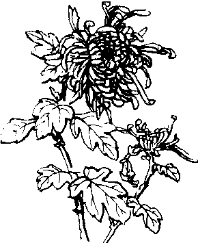 这首咏菊七律表现菊花凌寒耐霜的性格和作者喜爱菊花的心情。 首联写菊花开放的季节。蘋(pin贫)是生长于水中的蕨类植物,茎生泥中,叶浮水上。叶有长柄,四片小叶生在柄端成田字形,又名田字草。夏秋开小白花。 “冷”字是使动用法,秋露使蘋花感到寒冷,这种耐寒的江花即将残去。“萧萧”是摇动的样子。首联从宏观上展现了两幅画面:一幅是蘋花将尽、北雁南飞的萧索江上秋景图;一幅篱边黄菊丛开图。用对比衬托手法突出了菊花卓然独秀的无限生机。 颔联又用两个近镜头表现菊花的耐寒 一是雨湿菊花图:一场秋雨一场寒,而菊花受秋雨滋润,显得更加饱满、鲜艳。一是菊花傲霜图:节候已晚,寒霜遍降,万物凋零,唯有黄菊绽开于布满白霜的土地上,充满了生命的活力。在众芳零落之后,菊花这金黄的色彩和耐寒独立的精神足以供人欣赏了。应该注意的是,诗人并未就菊花的色、香、形等自然特征进行细腻的描写,而是在具有季节特征的自然背景下摄取了菊花开放的两个镜头,着力表现菊花的耐寒品格。而作者对菊花耐寒品格的喜爱之情也自然而然地溢满于字里行间,这就是诗歌评论家们常说的“景中情”。 全诗表现菊花耐寒品格和诗人对这种品格的喜爱的主题,如果说诗的前半是以写景和景中含情表现主题的话,那么,诗的后半便是以叙事和事中带情来表现主题。 颈联叙述诗人夜饮赏菊以至大醉。“绮席”是上面编有花纹的席子。“簷”是屋簷,“ 小簷”当指院内靠近篱笆的亭簷。“承”是接,连。诗人本在室内饮酒,隔窗赏菊,酒兴正浓,爱菊至甚,驱使诗人在庭院内小亭旁铺设一张席子,紧接菊丛,将酒肴移至席上,由隔窗赏菊变为对菊饮酒以尽欢尽兴。“纵”是长,深。赏花之情助饮酒之兴,长饮不止,直到深夜,以至酩酊大醉。“卮”是酒杯。金杯都翻倒了,不是醉了嘛? “冉冉”是渐进的样子。摘菊在手,香气不断散出。菊花不独有耐寒独立的品格,而且香气宜人,作者喜菊之情已达到高潮。结句“泛”是泛舟,放船。如果理解为乘醉携菊放船遣兴,与咏菊主题似不相密切。诗人的思路能否如此不集中?实令人怀疑。不妨作一臆测:“西风”是用典。《晋书·张翰传》载:“翰因见秋风起,乃思吴中菰菜、菁羹、鲈鱼脍,曰:‘人生贵得适志,何能羁宦数千里以受名爵乎!’遂命驾而归。”本诗中“西风”即“秋风”。诗人对菊花凌霜耐寒品格赞赏备至,“寒枝”、“晚节”似浸透了诗人身世之感,似将不得意而又守志不移之情寄托于菊花之中。酒醉之后,“物情唯有醉中真”,而爆发出效菊花而独秀、守志而归隐的念头。或许这正是诗人爱菊的本意。当然,也可能是我们的曲解。 菊花郑燮