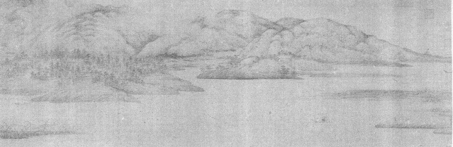 | 释义 | 董源潇湘图卷 董源潇湘图卷五代。董源绘。绢本设色。纵50厘米,横141厘米。北京故宫博物院藏。董源,公元10世纪人,生卒年代不详。字叔达,钟陵(今江西进贤西北)人,南唐升元初曾奉命写《庐山图》,中主李璟时任北苑副使,故称“董北苑”。他是五代时江南山水画派的代表。他根据江南山光水色的特点,吸取前人青绿山水和水墨山水的技法,创造出水墨、色彩相结合,披麻皴法与苔点相结合的独具特色的画法。《图书见闻志》中说他山水画“水墨类王维,着色如李思训”。宋代以后,董源及其弟子巨然的画风被视为南派正宗,元四家及明代吴门画家都深受影响。此图描绘的是江南山水景观。远处浑圆的山峦连绵起伏,云雾缭绕,山脚林木苍郁,洲渚交错于平静宽阔的江水中。近处右侧的沙碛平坡上,立着两位红装女子,前边另有一女子提箧回首。岸边滩头有五人执乐器吹奏,似在迎接正驶向滩头的船上来客。船上有六人,一人穿朱衣端坐中间,旁边一人执伞,二人侍随,船首尾各一人执篙摇橹。近处左侧岸边,绘几位围绕成环形的拉网捕鱼者和划船垂钓者。江面远处渔舟点点,往来行驶。此图着色浅淡,以花青运水墨点簇,清新湿润,质感较强。坡脚运用披麻皴,浑厚华滋,体现出江南水岸边草木茂盛的环境特色,图中人物用粉白青红诸颜色加以渲染,虽然运笔简括,形象矮小,但神态逼真,给苍茫郁绿的山光水色增添了无限的生机活力。此图原无款印,董其昌据《宣和画谱》中所述定名为《潇湘图》,并认为是描绘“洞庭张乐地,潇湘帝子游”词意。图前有董其昌题蓝笺引首,后有王铎跋,尾纸有董其昌二题。收藏印记有<稽察司>半印,<宣和>连珠印及卞永誉、安仪周等印,曾著录于《宣和画谱》、《妮古录》、《清河书画舫》、《式古堂书画汇考》、《大观录》、《墨缘汇观》、《石渠宝笈三编》等书之中。