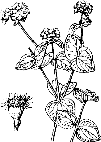 同属约30种。其中,心叶藿香蓟(A. houstonia-mum)观赏价值较高,别名熊耳花,株高15~20cm,叶皱、叶基心形。花较大,花粉红、白、雪青、蓝紫等色,花期夏秋季。原产秘鲁、墨西哥。可作为毛毡花坛、花丛花坛、花境等镶边材料,也用于岩石园点缀或盆栽。 藿香蓟tropic ageratumAgeratum conyzoides L.,菊科,藿香蓟属。多年生花卉,作一二年生栽培。2n=30。原产墨西哥;中国有引种栽培。株高40~60 cm,有白色柔毛。茎多分枝并稍披散。叶对生,卵形,基部钝圆或宽楔形,有圆钝锯齿。头状花序小而多,成伞房状密集着生于枝上部;管状花蓝,淡紫或白色;花期7~10月末。瘦果有冠毛。性喜温热,但炎夏生长开花受抑。耐修剪。春播或冬春两季在室内扦插繁殖。本种为优雅的花坛和花境材料,亦可盆栽或作切花。同属观赏种还有大花霍香蓟,花序较大,园艺品种多,有蓝、雪青、玫红及白花。并有斑叶种和矮生种。 |