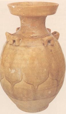 ●此器盘口、短颈,腹部修长呈橄榄形,肩部有六个横系。