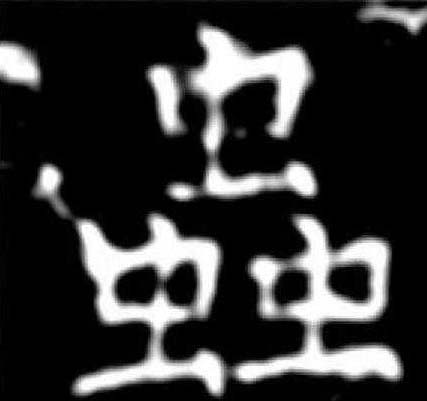 蟲蟲(虫)Chóng现行罕见姓氏。今云南之江川有分布。《郑通志》、《续通志》 之 《氏族略》 亦俱收载。其源不一: ❶ 《姓氏考略》 注引 《路史》 云: “徐偃王后有虫氏。”徐,国名,其地在今安徽之沙县一带地方;偃王,即徐国之君,曾率三十六诸侯反周,为周穆王残酷镇压下去。 ❷ 《续通志》 注引 《古今姓氏书辨证》 曰:“出自春秋邾国虫邑。鲁昭公十九年,宋围虫,取之。其大夫以邑为氏。” (按: “虫”、“蟲”古代为二字,有条件地通用。“虫”亦音huǐ,即虺之本字,亦为姓。) 汉有功臣曲成侯虫达(达,或引作“连”)。 蟲chóng❶昆蟲的通稱。班昭《蟬賦》:“伊玄蟲之微陋,亦攝生於天壤。”張衡《定情賦》:“大火流兮草蟲鳴,繁霜降兮草木零。” ❷泛指動物。張衡《西京賦》:“百卉具零,剛蟲搏摯。” 蟲“虫”的繁体字。 上一条: 虫 下一条: 爞 虫蟲ㄔㄨㄥˊchóng二1978①名蛇。胶辽官话。清郝懿行《山海经笺疏》:「今东齐人呼蛇为~也。」②名鸟。中原官话。河南密县。清嘉庆乙丑年《密县志》:「鸟曰~。」③名精液。吴语。上海宝山霜草墩、南汇周浦。浙江绍兴。④名蛆。闽语。台湾〖 〗。⑤形呆气。吴语。上海松江。   蟲虫蟲chongCF78 “虫(昆虫)”的繁体。 蟲chóngC153 “虫”的繁体。 “虫”本读huǐ,通“虺”,俗又借作“蟲(虫)”字。 蟲(chónɡ)“ ,有足谓之蟲,无足谓之豸。从三虫。凡蟲之属皆从蟲。”(直弓切) 张舜徽云:“蟲之言动也。凡生物之能动者古皆谓之蟲也。《大戴记·易本命篇》有所谓羽蟲、毛蟲、甲蟲、鳞蟲、倮蟲,是蟲者固动物之通名。故人者,即所谓倮蟲也。今音蟲在澄纽,古读归定,固与动双声也。《贾子》言‘器无蟲镂’,《扬子》言‘彫蟲篆刻’,皆以双声借蟲为彤耳。”[1]参见第471部“虫”字。 “蟲”本义是动物总名。包括人在内的所有动物,古代都可以“蟲”称之。“蟲”在出土文献中最早见于包山楚简,作 。后代“蟲”所指范围缩小,主要指昆虫。但老虎称“大蟲”,仍承袭了古代用法。 蟲部有五个属字。如“蠱”字下云:“腹中蟲也。《春秋传》曰:‘皿蟲为蠱,晦淫之所生也。’臬 死之鬼亦为蠱。从蟲,从皿。皿,物之用也。”“蟲”今简化为“虫”。 蟲 ☚ 蟲部 蜚 ☛ 蟲 (chóng)小蟲之屬好類聚,故三之。用爲偏旁則不便書寫,故作“虫”,非必“虫”爲“蝮”之專名也。大頭曲身垂尾,蟲形皆然。“融、𧖓”一字,足徵“虫、蟲”一字矣。 蟲 ☚ 盩 豐 ☛ 00000654 |