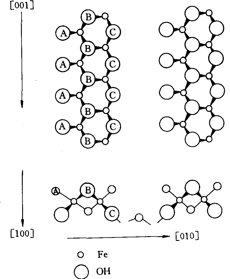 反应特征 铁铝氧化物表面很容易与阴离子进行配位体交换,即在适宜的条件下,铁铝氧化物的配位壳中部分配位体(羟基和水合基)可被含氧酸阴离子(如磷酸根、硅酸根、砷酸根、亚硒酸根等)或氟离子所置代。但铁铝氧化物胶体表面裸露的配位体(表面羟基和水合基)并不是全部能参与配位体交换的。在铁铝氧化物表面最活性的羟基(或水合基)是单配位的,两个或三个阳离子之间共享的羟基是比较惰性的。氧化铁(包括针铁矿、赤铁矿、纤铁矿、四方纤铁矿和无定形氢氧化铁凝胶)和三水铝石表面上的配位体交换的红外研究证明,参加配位体交换的仅为单配位的A型羟基(水合基)。C型或B型羟基一般很少或不能参与配位体交换。只有在特定条件下,双配位C型羟基(或称桥羟基M< >M)也能参加配位体交换,当然活性远不如A型羟基。如在磷酸盐高浓度条件下,磷酸根离子也能与水合氧化铝表面或云母表面上羟基铁和羟基铝组分的桥羟基进行配位体交换。铁铝氧化物、水合氧化物和氢氧化物表面的配位水合基(-OH+2基)和羟基(-OH基)的反应性和条件也不相同。一般在酸性pH和低阴离子(如磷酸根)浓度条件下,参与配位体交换的次序为: 配位水合基(-OH+2基)≥配位羟基(-OH基)>桥羟基 |
