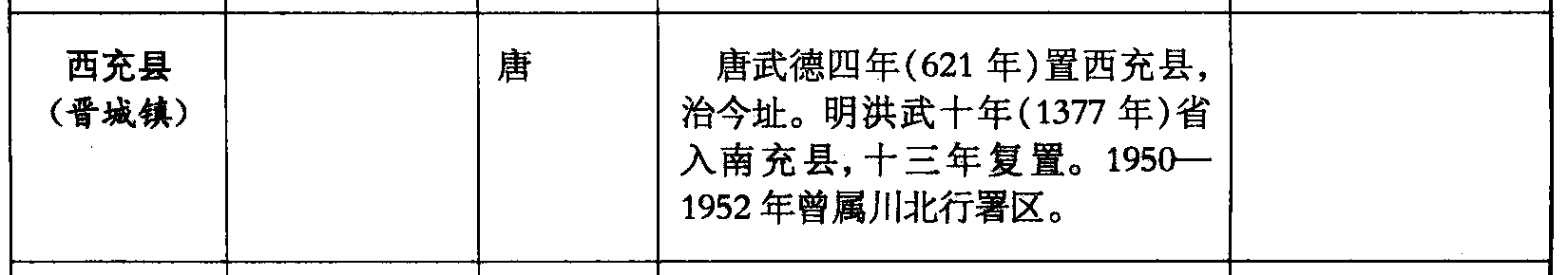 西充县(晋城镇)唐唐武德四年(621年)置西充县,治今址。明洪武十年(1377年)省入南充县,十三年复置。1950—1952年曾属川北行署区。