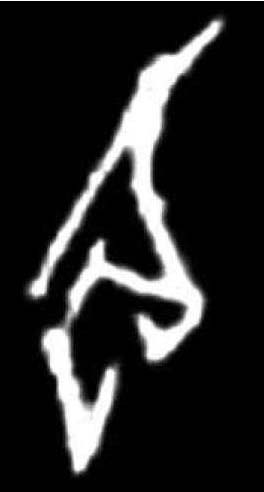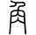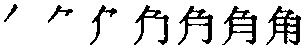 角jiǎo,jué (甲) (篆) 甲骨文为象形字,像牛、羊之角。作意符生成字有解、触等,作声符生成的字有: què 确(正确) jué 桷(建筑用木料,方形的椽子)