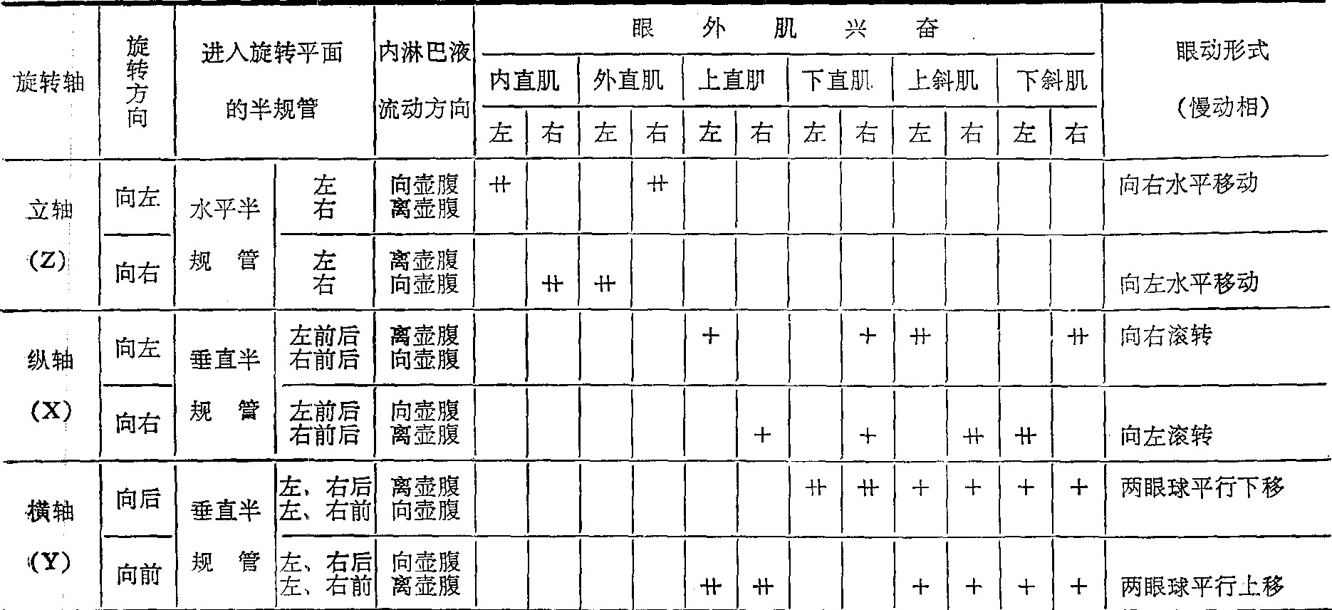 注: ++—兴奋强的眼外肌; +—兴奋弱的眼外肌