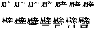 | 释义 | 譬pì比喻。張衡《思玄賦》:“不抑操而茍容兮,譬臨河而無航。”王粲《大暑賦》:“患衽席之焚灼,譬洪燎之在床。”《藝文類聚》作“𨐫”。 譬 譬pì比喻,比如。《小雅·小弁》四章:“譬彼舟流,不知所届。”郑《笺》:“言今大子不为王及后所容,而见放逐,状如舟之流行无制之者,不知终所至也。”《大雅·抑》十二章:“取譬不远,昊天不忒。”朱熹《集传》:“忒,差。我之取譬,夫岂远哉,观天道福祸之不差忒,则知之矣。” ☚ 襮 露 ☛ 譬读音p·i(ˋ),为i韵目,属i—er韵部。匹赐切,去,寘韵。 上一条: 甓 下一条: 副 譬〔pi〕 〗。 〗。![]() ![]() 譬pì打比方 譬pì譬打比方:~如︱~喻︱设~。 譬pì比喻,打比方:譬如│譬若│譬喻。 譬pǐ比。如:他~我高一头。 譬pì譬pì譬pì❶ 比喻,打比方。《诗经·小雅·小弁》:“~彼舟流,不知所届。”(届:至。)《吕氏春秋·察今》:“~之若良医,病万变,药亦万变。” 譬*piC6A9 比喻 比喻比(比况;比拟;比方;比仿;比并;比譬;比类;比例;打比;仪比;称比;打比方) 喻(设~;暗~;直~;辟喻;引~;拟喻;称喻) 方 况(以古~今) 譬(譬喻;譬谕;设譬;取譬) 拟(拟伦;拟质;拟谕) 辟 皆 谕 指儗 另见:比较 模仿 举例 ☚ 比喻、假设 讽喻 ☛ 举例 举例举类 另见:写作 提出 例子 ☚ 举例 列举 ☛ 晓谕 晓谕譬 镌 风示 谕告 晓告 告喻告谕 申谕 ☚ 使知道 嘱咐 ☛ 譬pì匹赐切,去至。 〖譬〗 粵 pei3〔屁〕普 pì ❶ 告訴,說明。許慎《說文解字》:「〜,諭也。」(諭【粵 jyu6〔預〕普yù】:告知。)范曄《後漢書.班梁列慱》:「超〜軍士曰。」(超:指班超。)❷ 了解,明白。《後漢書.申屠剛鮑永郅惲列傳》:「言之者雖誠,而聞之者未〜。」 ❸ 用比喻的方法來說明,有詞語「〜喻」、「〜如」等。荀況《荀子.非相》:「舍後王而道上古,〜之是猶舍己之君而事人之君也。」 ❹ 假使。司馬遷《史記.孔子世家》:「〜使仁者而必信,安有伯夷、叔齊?」(假使仁者真的可以得到眾人的信任,又怎會有伯夷、叔齊餓死之事?) 譬pì比方。如:譬如,设譬,譬喻。 譬pìⅠ (比喻; 比方) example; analogy: 设 ~ cite an example; draw an analogy Ⅱ [书] ❶ (晓谕) give explicit instructions [directions] 譬pì❶ 譬 |