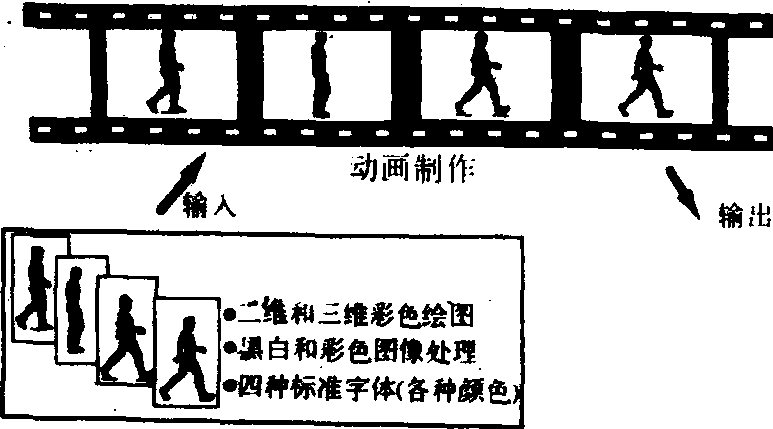 动画是把形象的动作、变化分段画成许多画幅,用摄影机连续拍摄而成的。制作者要画许多相同或相似的画面,是一项非常繁重的工作。高速、准确地完成大量重复性的工作正是计算机的特长。因此,利用计算机辅助动画设计与制作越来越受到重视。计算机系统中大量的二维及三维图形软件,可完全模拟真实绘图,如同使用铅笔、毛笔、喷雾器等传统绘图工具一样,通过计算机的各种生成特殊效果的命令,绘出各种仿真的某些人工难以绘制的二维及三维图形。将系统内生成的图片进行连接,(制作动画其原理参阅计算机绘画条目),动画制作方式比手工制作简便很多,只要设置物体的起始状态、生成祯数、终止状态、物体变形的程度动画便可自动生成。如一个人的行走,全部图片的制作可在第一祯动画图片的基础上局部修改得到(见图)。图片定位非常容易,且大大减轻了图形生成的工作量。此外手工难以制作的,如颜色滚动、景物早晚更替时的色彩变化,计算机系统都可以自动生成。计算机辅助动画设计在电视广告、艺术动画片制作以及形象化教学等领域皆可应用。