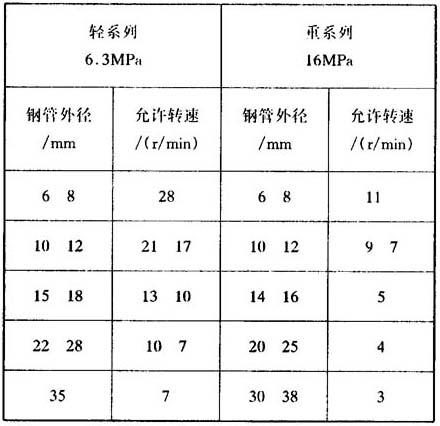 | 释义 | 其他连接件 (1)快换接头 在某些液压系统中,管路经常需要与元件或部件连接和拆卸,此时采用快换接头不仅比普通接头方便装卸,而且节省时间提高工效。 快换接头的基本结构是由一个外套接头和一个内塞接头组成。每一个接头可以包含(或不包含)一个单向阀。在快换接头拆卸时(即外套接头和内塞接头分离时),接头内的单向阀会自动关闭,以阻止管内油液外流。见图30.2-9。 1-外套接头体:2-单向阀;3-弹簧;4-滑套;5-O形圈;6-滚珠;7-单向阀;8-内塞接头体 当快换接头需连接时,先将外套接头上的滑套4向左后退,使滚珠6能往外退让,同时插入内塞接失,在单向阀2和7互相顶开时,油路沟通,此时滚珠已落入内塞接头的沟槽内,松开后因弹簧3的作用,使滑套自动向右移动,迫使滚珠收缩锁住内塞接头,防止脱开。O形圈5防止油液外漏。如要拆卸时,应先将滑套4向左后退,同时拔出内塞接头即可。 这类快换接头型式很多,上述是一种较基本型式。我国生产的快换接头,根据与管子的连接形式,分A型和B型,其外形和螺纹连接尺寸,见表30.2-69。 表30.2-69 快速接头(A型和B型)的外形和连接尺寸 (a)U型卡截面图;(b)U形卡外形;(c)结构图 1-内塞接头;2-O形密封圈;3-U形卡;4-外套接头 连接时,只要将内塞接头1插入外套接头4,再横穿一个U形卡子3,使内塞接头不能脱开。内塞接头上的O形圈2起阻止油液外漏的密封作用。U形卡子上的V形沟槽,见图30.2-10(b),起到防自松作用。拆卸时,只要用手指推压U形卡子底端,见图30.2-10(a)箭头处,使它脱开,同时提拉U形卡子,这时就能拔出内塞接头。 这类产品英国弗莱克司(Hi-Flex)和美国盖梯斯(Gates)公司均有系列产品。 (3)回转接头 回转接头用于两个管路有相对转动的连接。一般管路连接的接头,都不能有相对转动。铰接接头也只允许在连接过程中转动来调整接管的位置。而回转接头的连接在系统运行中也允许有相对转动,且能保持系统压力和良好的密封性。这类接头有滚珠轴承回转接头和止推轴承回转接头之分。后者结构较前者简单,但使用压力和允许转速低于前者。 滚珠轴承回转接头(见图30.2-11)是由外套接头1和环形组合密封件3回绕在由枢轴4、滚珠5、轴承支架6和接头体7组成的滚珠轴承接头体。根据美国派克(Parker)公司提供的资料,在低压小通径接头时,可高达1500r/min,见表30.2-70。 1-外套接头;2-密封圈;3-环型组合密封件;4-枢轴;5滚珠;6-轴承支架;7-接头体 表30.2-70 滚珠轴承型回转接头的许用转速 1-接头体;2-档圈;3-O形密封圈;4-密封圈;5-导套接头;6-止推轴承;7-锁紧螺母 表30.2-71 止推轴承型回转接头的许用转速