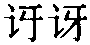 | 释义 | 讶读音·ia(ˋ),为ia韵目,属a—ia—ua韵部。吾驾切,去,祃韵。 上一条: 𡸗 下一条: 訝 〗。![]() ![]() 讶訝yà〈文〉惊奇;诧异 讶惊奇;诧异:~然︱惊~︱怪~︱疑~。 讶ya讶然 怪讶 惊讶 疑讶 讶yà❶ 同“迓”。迎接。《仪礼·聘礼》:“厥明,~宾于馆。” 讶*訝yaD1C8 迎接 迎接迎(迎迓;迎取;迎致;迎逆;迎逢;迎将;迎请;逢迎;将迎) 接(相接;候接) 讶 迓(迓迎;展迓) 逆(~旅) 请取 另见:出去 等待 陪伴 接待 客人 礼节 ☚ 迎接 迎人 ☛ 诧异 诧异诧 讶 异(突异) 怀怪 ☚ 惊喜 惊异 ☛ 讶yà惊奇,诧异。如:十分惊讶,讶然。 讶(訝)yà [书] (诧异) be surprised; be astonished; wonder 讶*訝yà(6画) *讶(訝)yà6画 言部 〈书〉惊奇;诧异: 惊~|怪~。 讶訝yà小篆以来的形声字。从讠(言),牙声。或体作迓,从走之旁(辵chuò,走路义)。本迎接义。转义为惊奇,奇怪。组词如:惊讶。与迓字分化。 讶訝★繁◎常★常