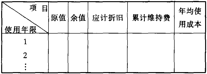 式中:T——某设备经济寿命;K0——该设备原值;L——预计残值;λ——每年等额增加的维持费。 若每年增长的维持费(即运行成本)不相同,则需用列表法计算。表格的栏目如下: