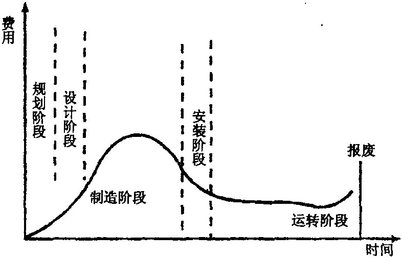 设备综合工程学是对设备实行全面(或综合)管理的一种重要方式。是欧美和日本等资本主义国家逐步发展起来的一门新学科。首先是由英国设备综合工程中心所长丹尼斯·帕克斯(DennisParkes) 于1971年在美国国际设备工程年会上提出的。1974年英国工商部下的定义是,“设备综合工程学是这样一门学科,它对适用于固定资产的工程技术、管理、财务等实际业务进行综合研究,以求实现设备寿命周期费用(Life Cycle Cost)的最大程度节约。工厂机械、装置、建筑物的可靠性和有关可靠性的方案、设计、使用和费用的信息反馈,都属于它的研究范围”。1975年日本设备工程学会(JIPE)专务理事中岛清一写了一本名叫《设备综合工程学》的书,对此作了专门介绍。 设备综合工程学 设备综合工程学Terotechnology以设备寿命周期费用最经济为目的,以设备一生为研究对象的新兴学科。 1970年,英国设备综合工程中心负责人丹尼斯·巴库斯提出这一理论,并创新词“Terotechnology”,以区别于传统设备维修“Facilities Maintenance”。他认为,经过产业革命以来两个世纪的发展,设备已越来越大型化、复杂化、自动化、高效化,机器设备在给人们带来效益的同时,也带来了危害。为了解决伴随工业化而来的公害、灾害、资源紧缺、能源危机等一系列问题,必须改进传统的设备维修,实行设备综合管理。1974年,美国工商部给“Terotechnology”下的定义是:“为了使设备的寿命周期费用最经济,而把适用于有形资产的有关工程技术、管理、财务以及其他实际业务加以综合的科学。我国设备管理专家,参考日本中岛清一先生的提法,把它归纳为五大特点:(1)把设备寿命周期费用最经济作为研究与管理的目的。寿命周期费用是指设备一生的费用,如图8-19所示。(2)从工程技术、组织管理和财务成本等多方面对设备进行多学科的综合研究。(3)重视可靠性,实现易于维修和无维修设计。(4)对设备一生各环节进行研究,即对设备从规划、设计、制造、运输、安装、验收、使用、维修、改造,直到更新的各环节进行全面研究。(5)强调做好设计、使用及费用的信息反馈,包括企业内部的及企业外部的各种有关信息。 1979年,这一理论经过日本传入我国。在原第一机械工业部生产调度局的积极支持下,以沈亮安教授为代表的专家们将其迅速推向全国。1987年国务院发布的《全民所有制工业交通企业设备管理条例》,将其作为理论依据之一,并明确指出:“企业设备管理的主要任务,是对设备进行综合管理,保持设备完好,不断改善和提高企业技术装备素质,充分发挥设备效能,取得良好的投资效益。”