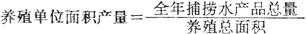 | 释义 | 养殖单位面积产量 指全年捕捞总量除以养殖面积之商。 反映养殖面积实际生产能力的指标。一般用养殖面积每亩水产产品来表示。 其计算公式为: