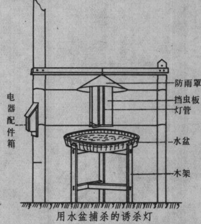 | 释义 | 诱杀灯light trap夜间引诱和捕杀有趋光性害虫的灯具。可供预测虫情和消灭大量虫源。许多农业害虫对波长0.33~0.40微米的紫外线有十分强烈的趋光性。诱杀灯的作用在于以对农业害虫有较大趋光性的光波,引诱害虫飞向近灯区,并吸引害虫扑向灯具,加以捕杀。